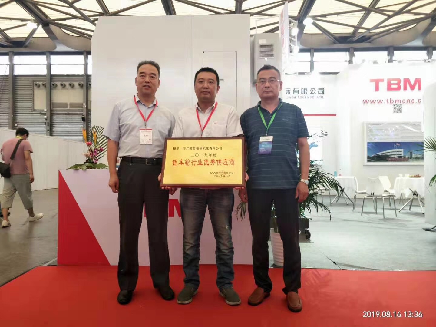 8月15日至17日,2019年第三屆中國上海國際車輪展覽會在上海新國際博覽中心舉辦。雙鳥數碼在公司董事長陳杰和總經理黃仲林的帶領下,及早準備,精心布置,以超強陣容攜高速高精輪轂專用機器組團參展。 展會的第一天,鋁車輪行業高鋒論壇暨第五新發布會上,工程部經理呂榮代表公司向廣大客商推介了公司新近研發的新產品(雙主軸輪轂臥車LH680WS),引領行業發展趨勢。展會期間,雙鳥數碼展位前吸引了眾多客商,人氣爆棚,得到了眾多車輪行業大伽的青睞,紛紛前來展位上指導并洽談合作事宜;歐洲、中東老客戶特地趕來看雙鳥機床并洽談下一步合作事宜。更有中國機械協會領導、車輪協會會長、秘書長親臨展位,對我司參展產品進行了逐一點評,給予了充分肯定和高度評價,并頒發了“2019年度鋁車輪行業優秀供應商”的獎牌。